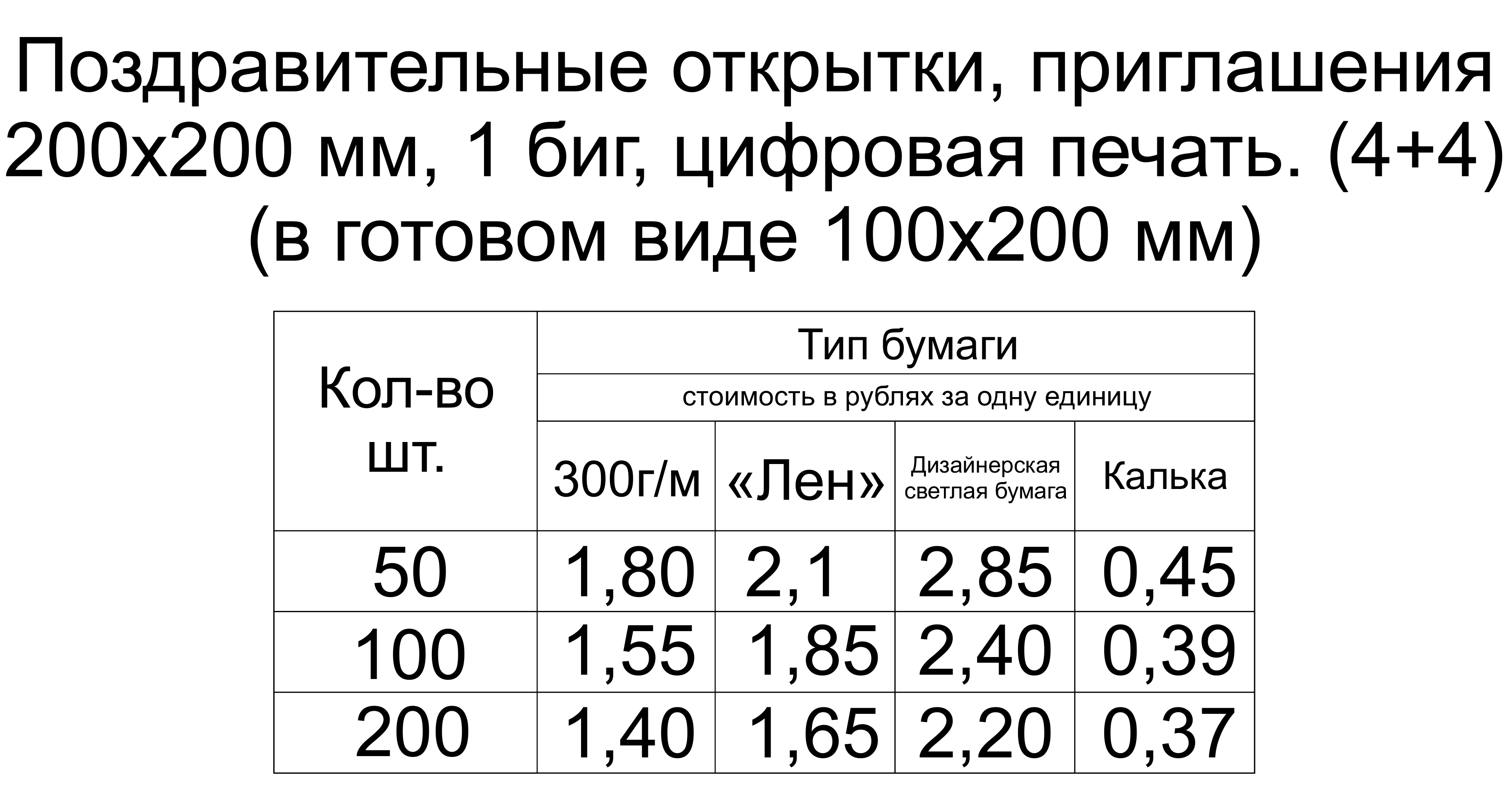 Поздравительные открытки, приглашения на дизайнерском картоне 200x200мм, (в готовом виде 100х200 мм)